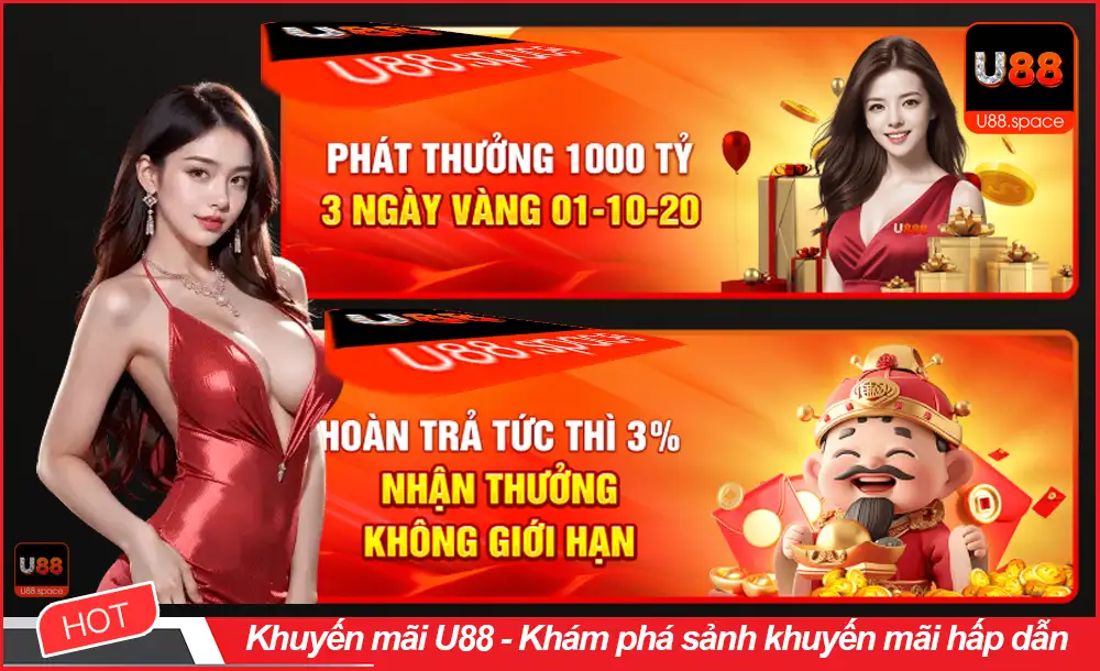 U88 thường xuyên tổ chức các chương trình khuyến mãi đặc biệt nhân dịp các sự kiện lớn như lễ Tết, kỷ niệm thành lập, hoặc các giải đấu thể thao lớn. Đây là cơ hội vàng để người chơi nhận được những phần thưởng giá trị và trải nghiệm cá cược đỉnh cao.